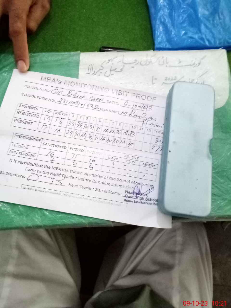 | EMIS Code: 36410005 | Name of School: GHS REHANA SAHU, KABIRWALA | |||