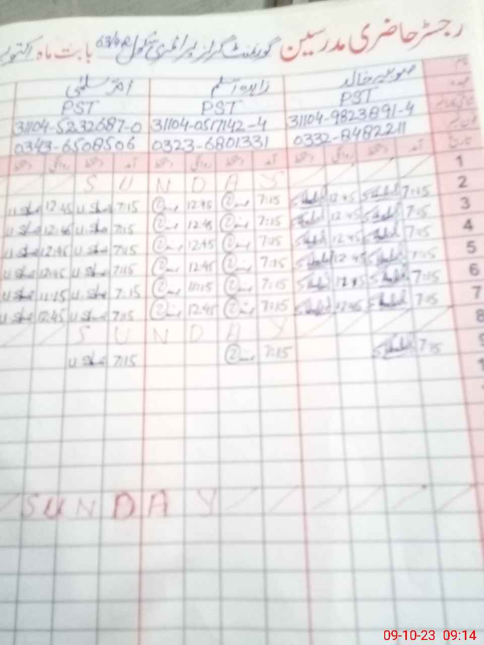 | Name: So**** Kh**** Designation: (School Headmaster's/Headmistress's) ESE Sci Phone/Cell Number: 03**** |