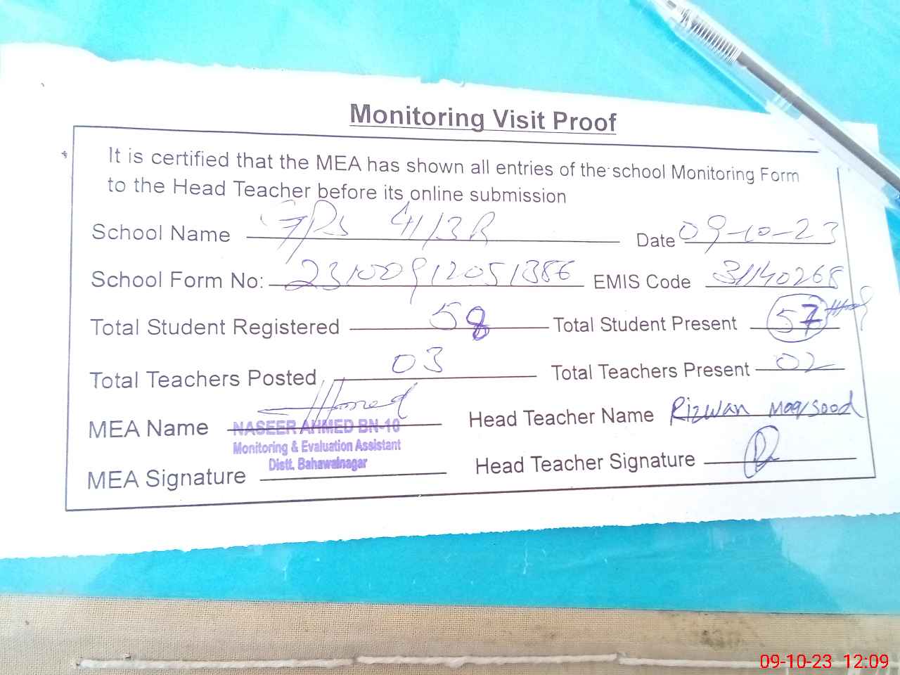 | EMIS Code: 31140268 | Name of School: GPS CHAK NO.41/3-R | |||