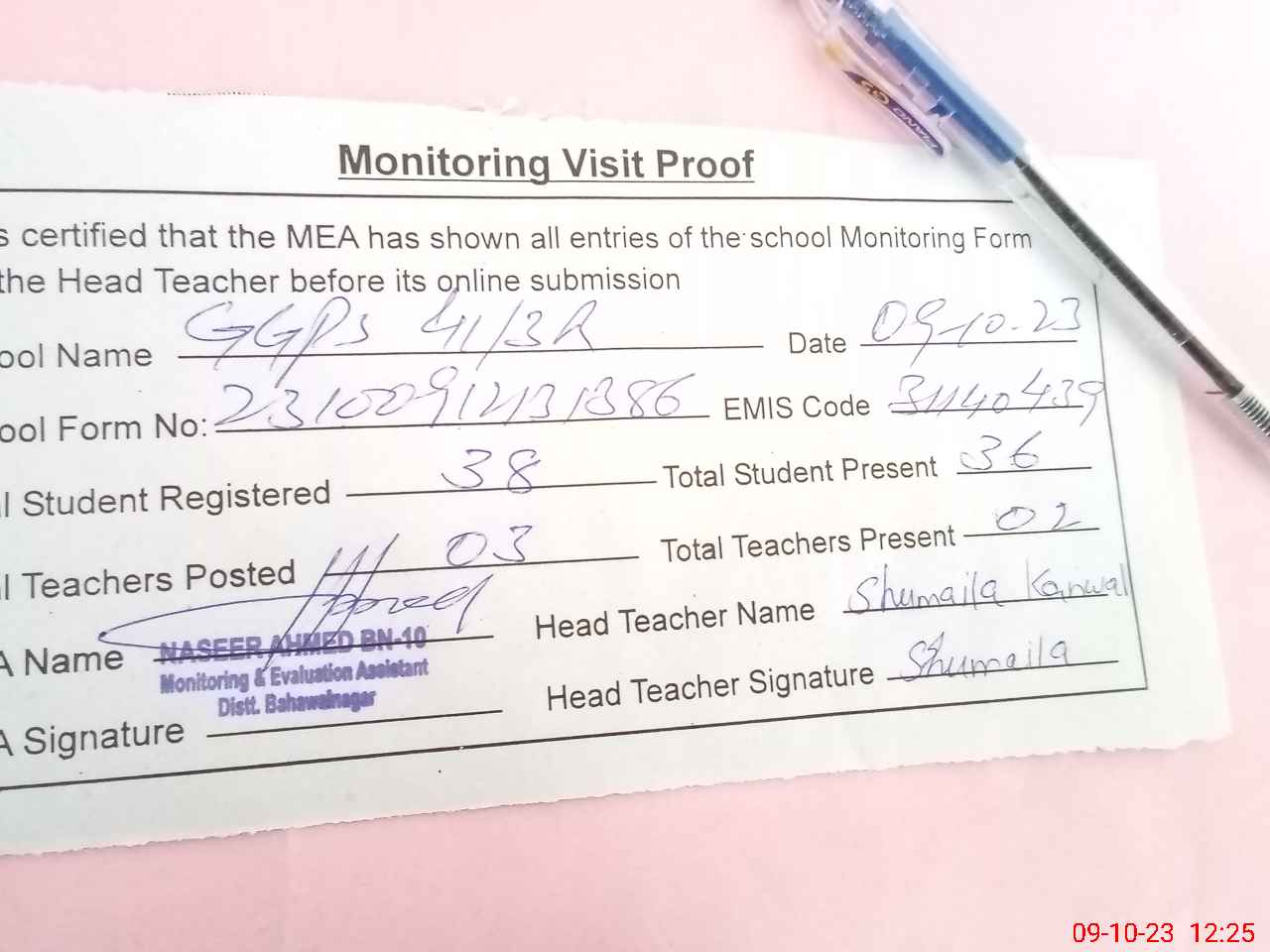 | District: BAHAWALNAGAR | Tehsil: HAROONABAD | Markaz: HND-4-FEMALE | Level: Primary | |