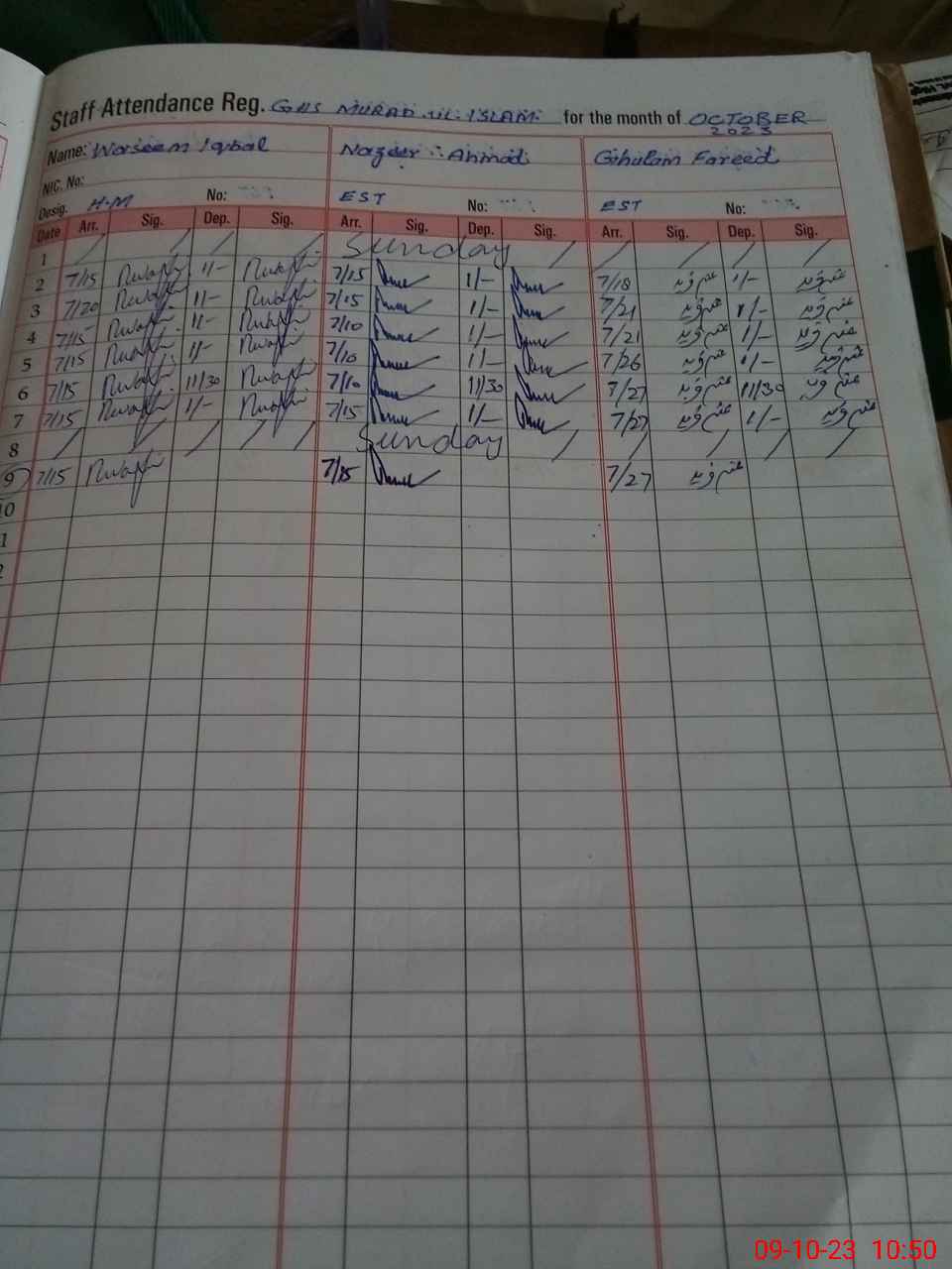 | Name: RA**** WA**** IQ**** Designation: (School Headmaster's/Headmistress's) S.S.T.(General) Phone/Cell Number: 03**** |