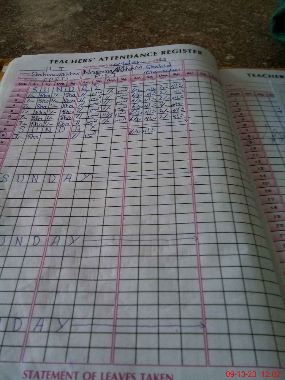 | CNIC | Full Name | Designation | R/C | Absence During Last Calender Month |