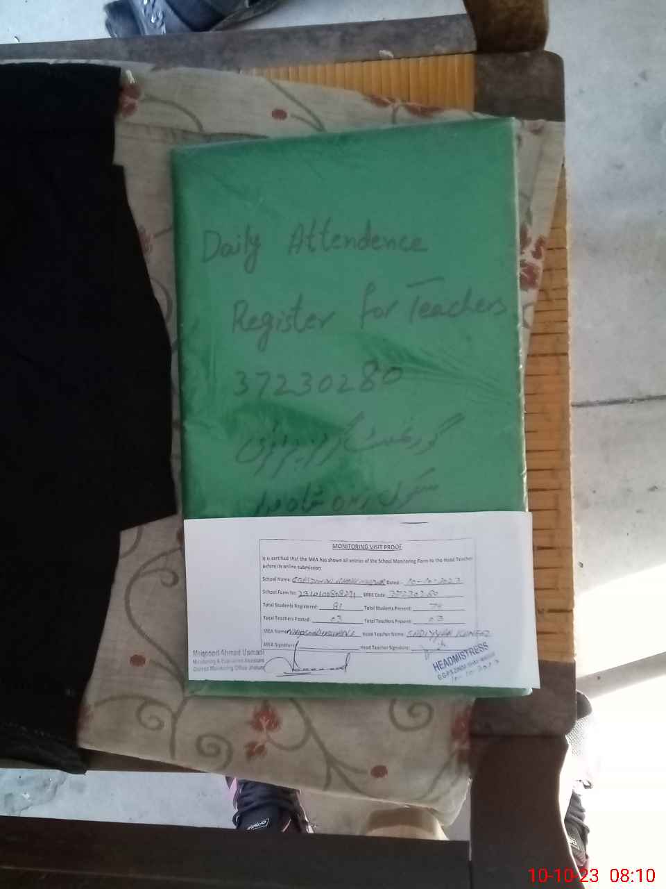 | Attendance Register | Head Teacher | MEA with School | Visit Proof |