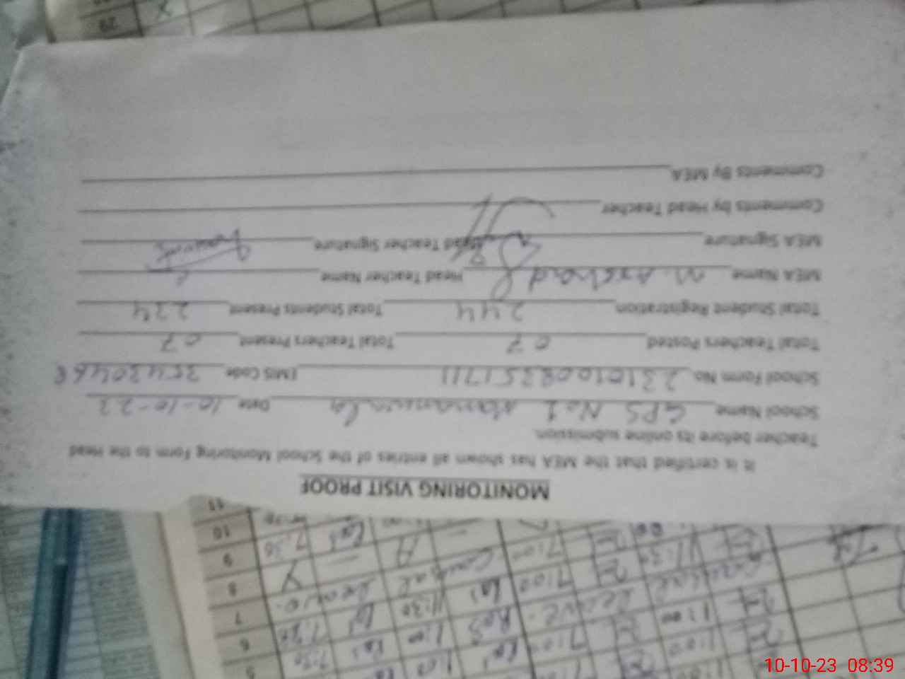 | Monitoring Date: 10-10-2023 | Start Time: 10-10-2023 07:47 AM | End Time: 10-10-2023 08:40 AM | Name of MEA: Mu**** Ar**** | |