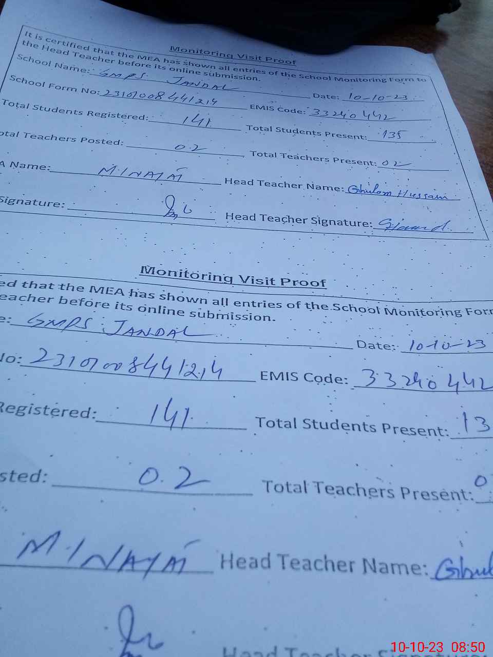 | EMIS Code: 33240442 | Name of School: GMPS JANDAL | |||