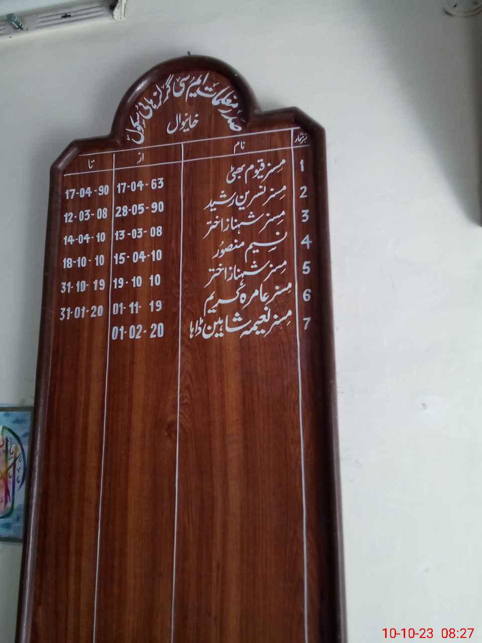 | EMIS Code: 36420042 | Name of School: GGHS MC KHANEWAL | |||