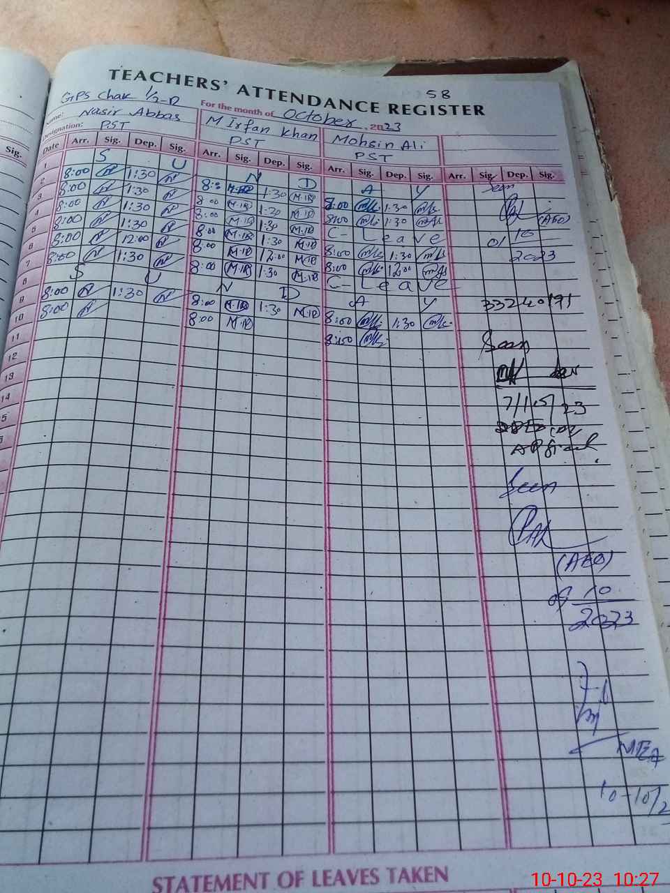| Name: NA**** AB**** Designation: (School Headmaster's/Headmistress's) PST Phone/Cell Number: 03**** |