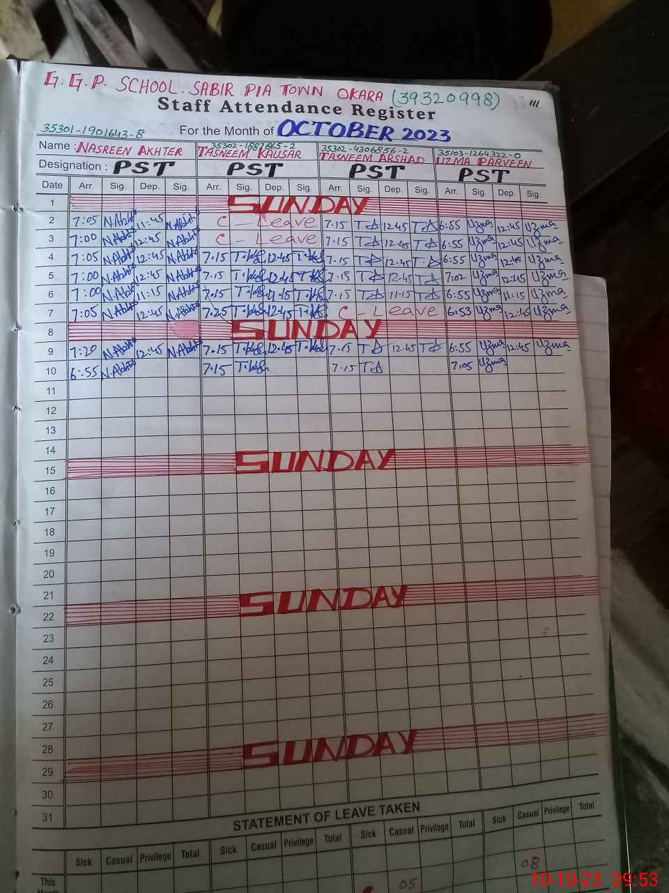| EMIS Code: 39320998 | Name of School: GGPS SABIR PIA TOWN OKARA | |||