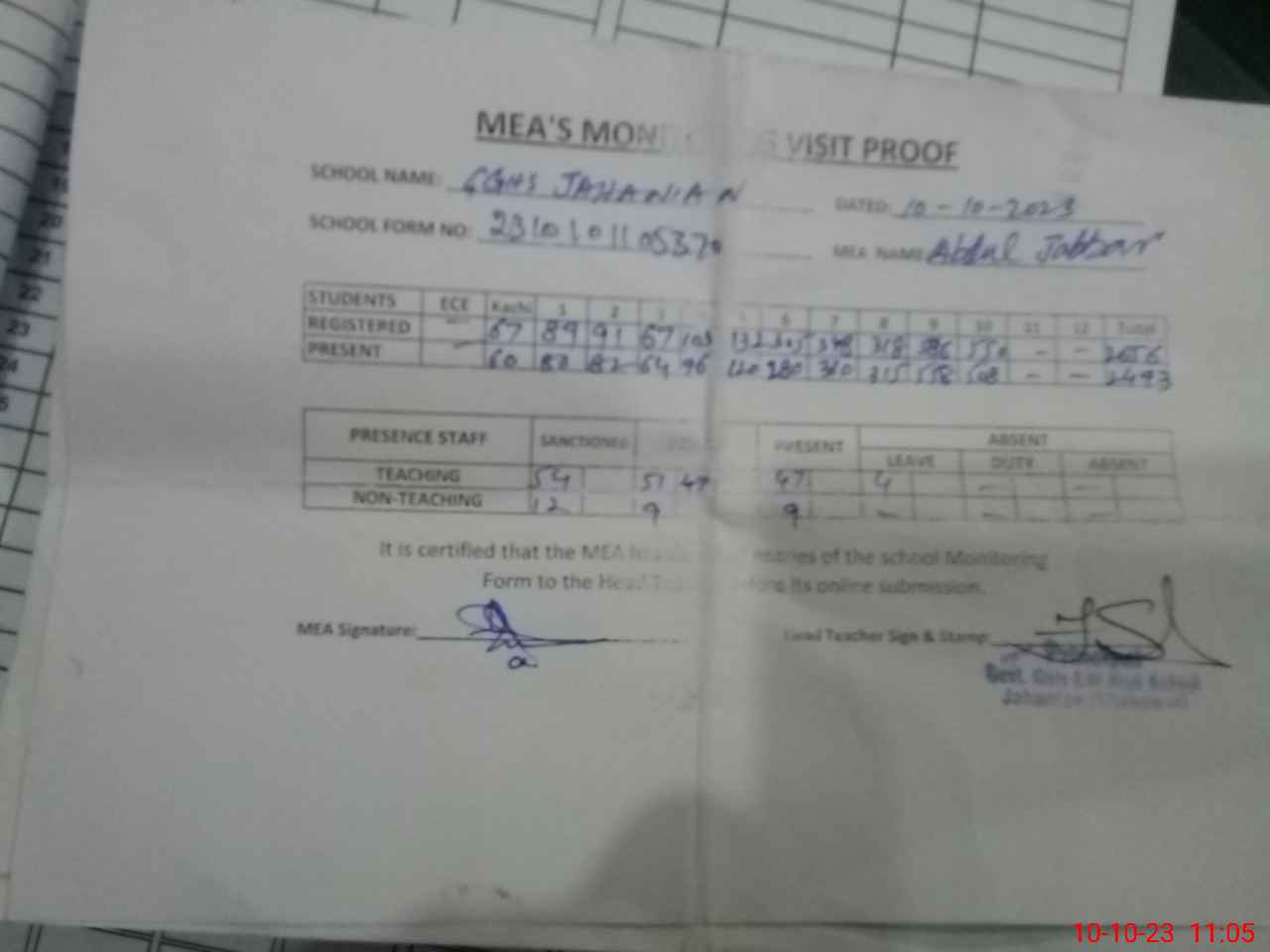 | EMIS Code: 36440055 | Name of School: GGHS JAHANIAN, JAHANIAN | |||