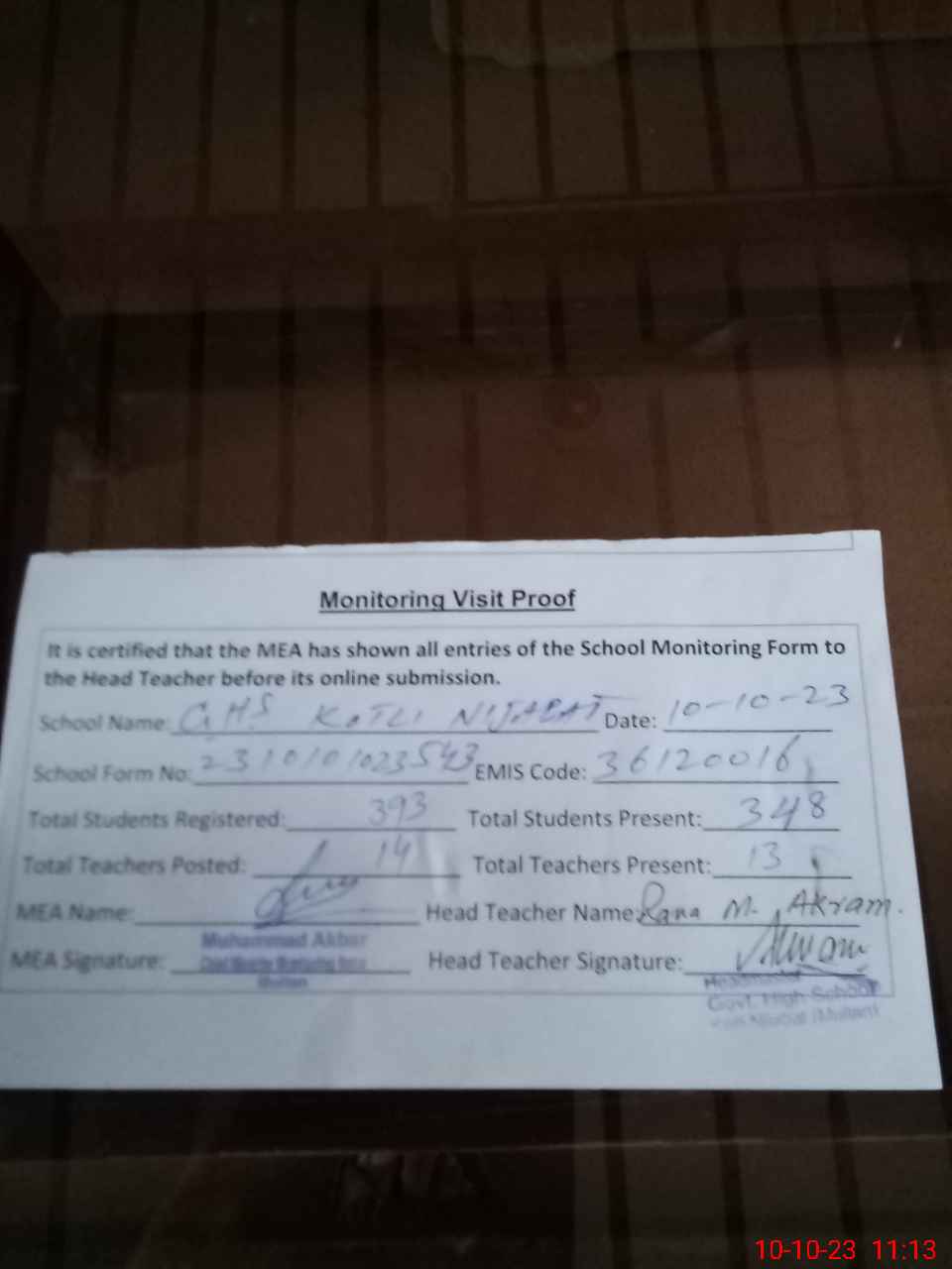 | Certified that this School was Inspected by the Undersigned MEA/DMO Today and the Information Stated Above is as Per Record. | |||||