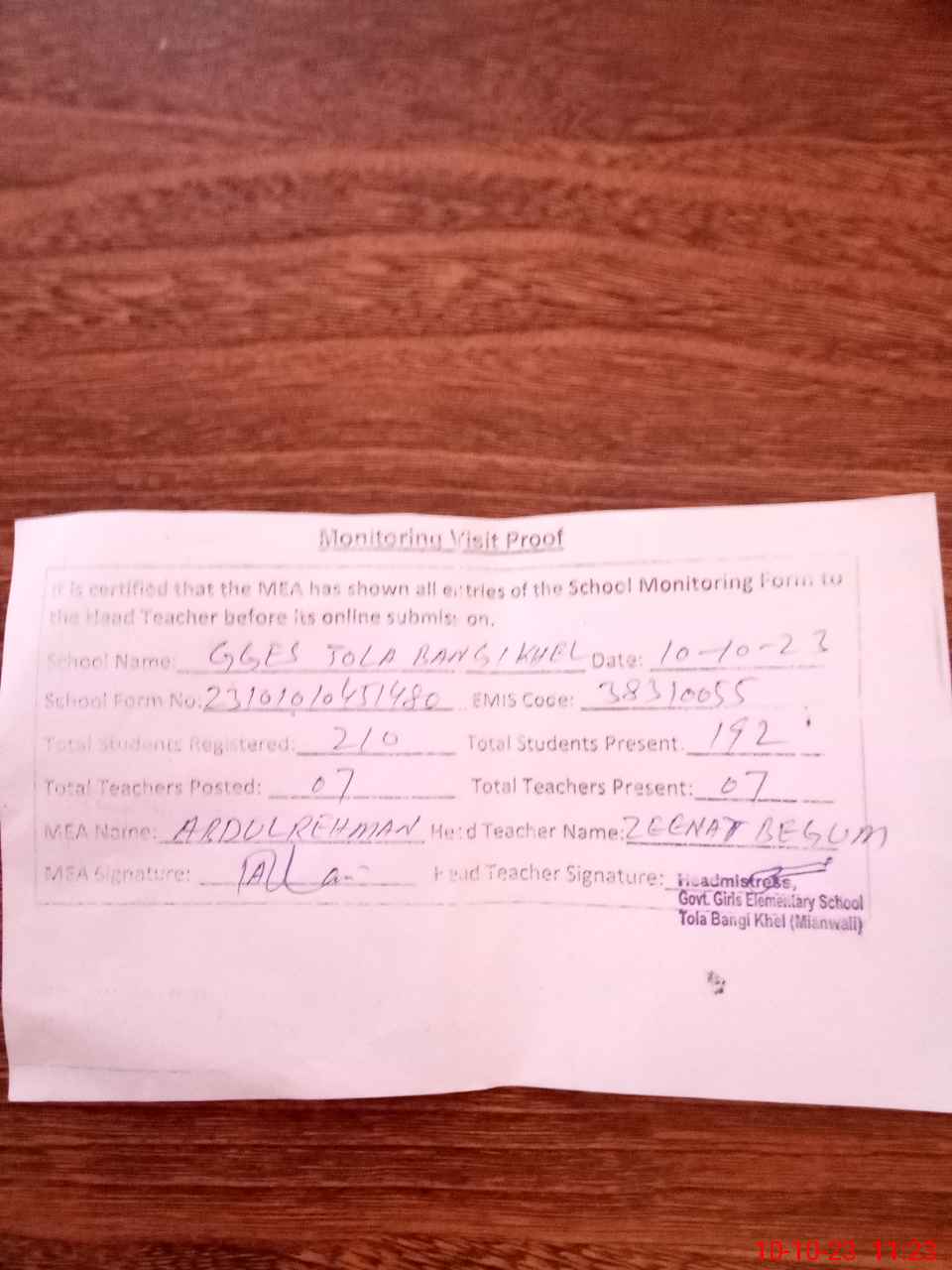 | EMIS Code: 38310055 | Name of School: GGES TOLA BANGI KHEL | |||
