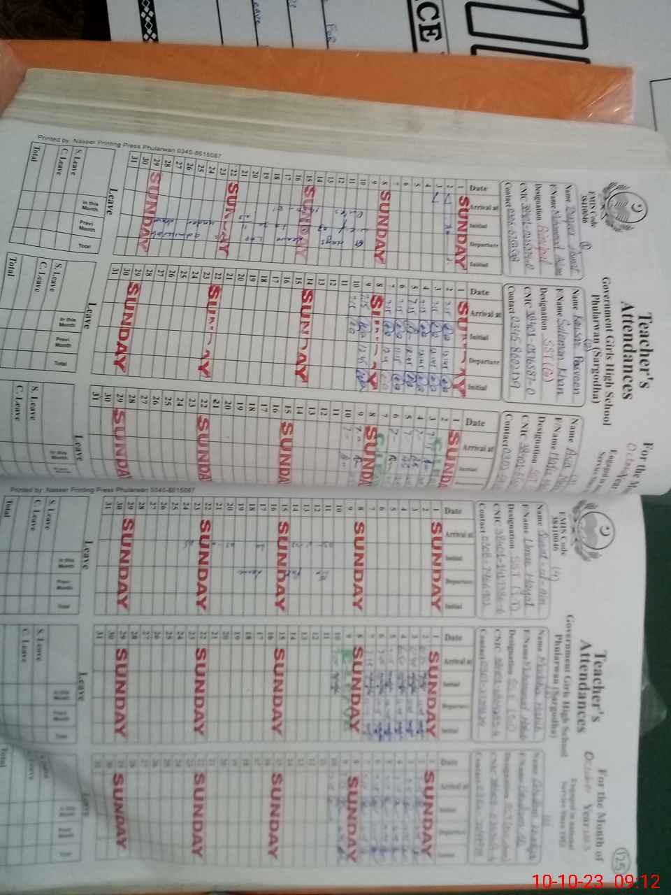 | CNIC | Full Name | Designation | R/C | Absence During Last Calender Month |