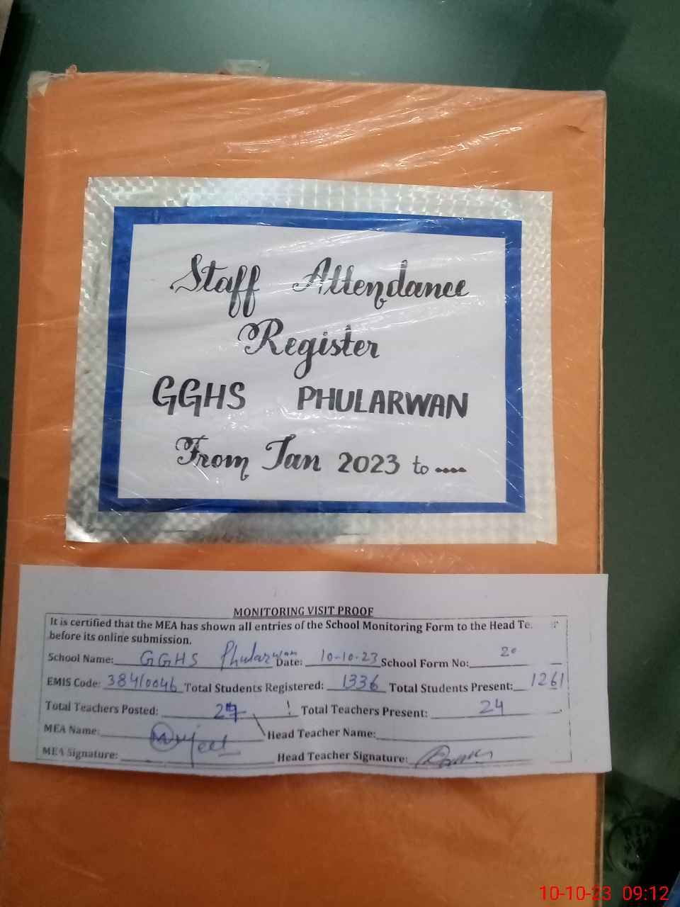 | Attendance Register | Head Teacher | MEA with School | Visit Proof |