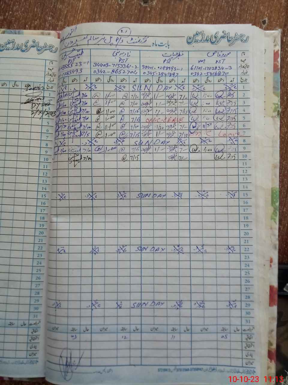 | CNIC | Full Name | Designation | R/C | Absence During Last Calender Month |