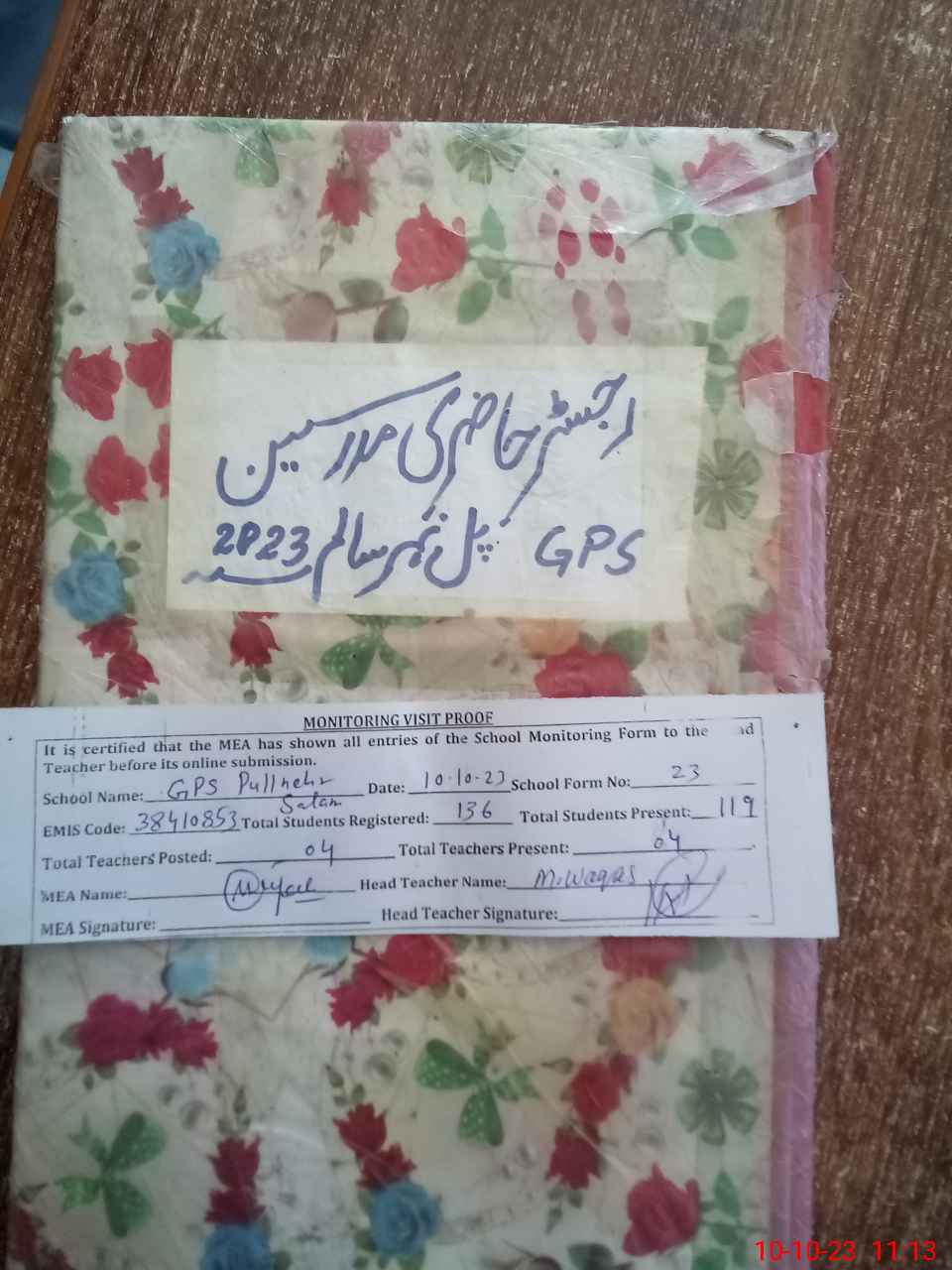 | Attendance Register | Head Teacher | MEA with School | Visit Proof |