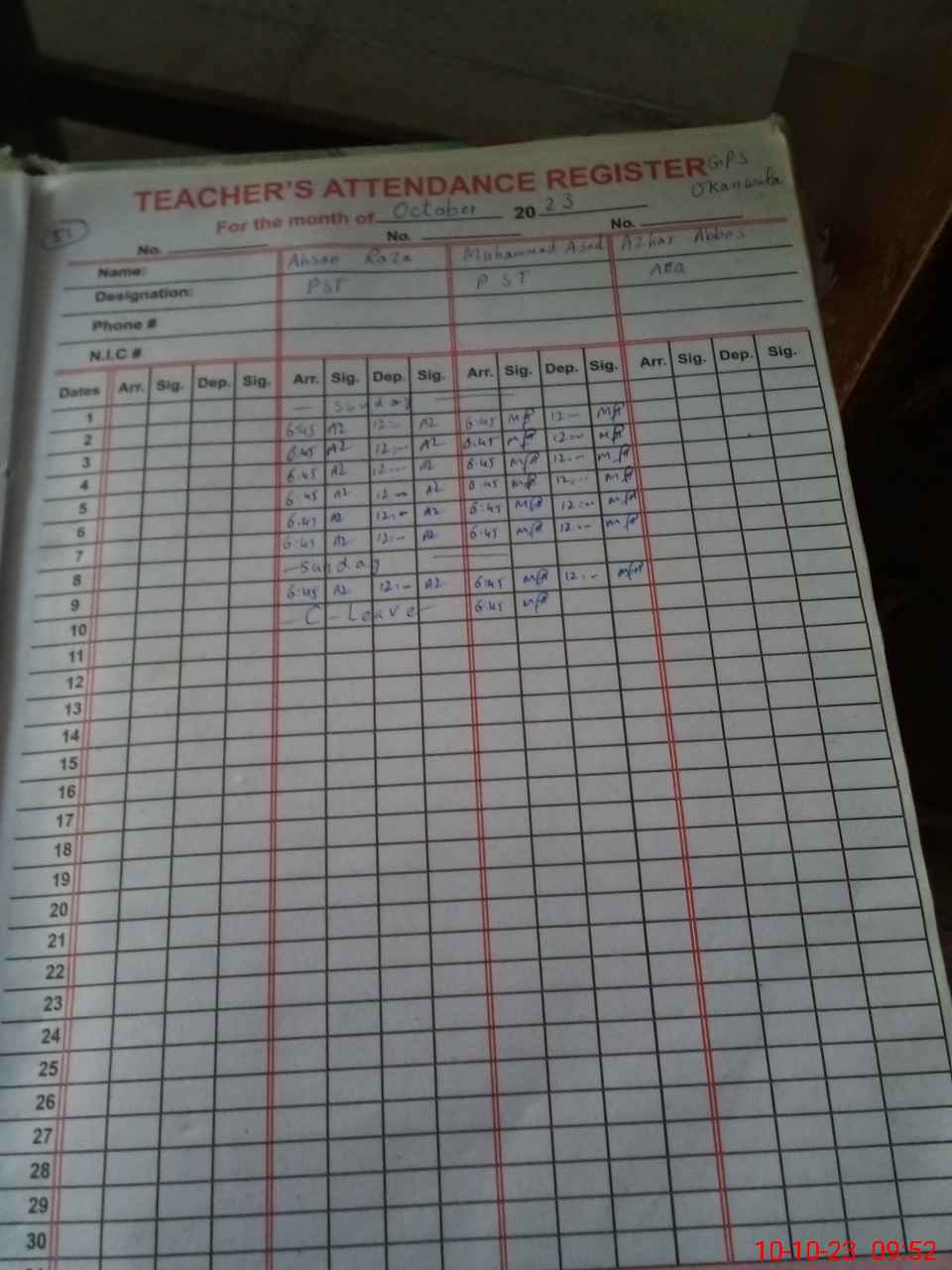 | Name: MU**** AS**** Designation: (School Headmaster's/Headmistress's) PST Phone/Cell Number: 03**** |