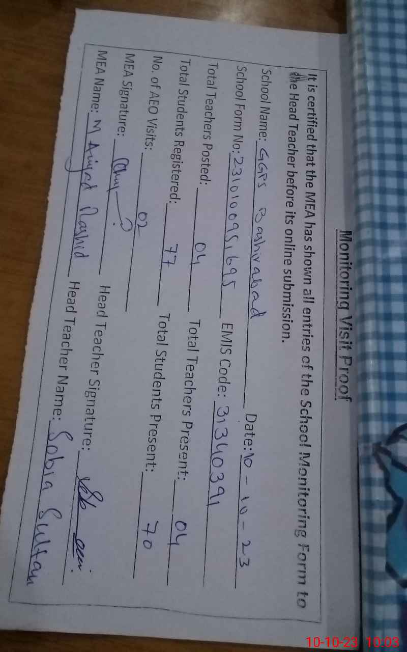 | EMIS Code: 31340391 | Name of School: GGPS BASHIR ABAD | |||