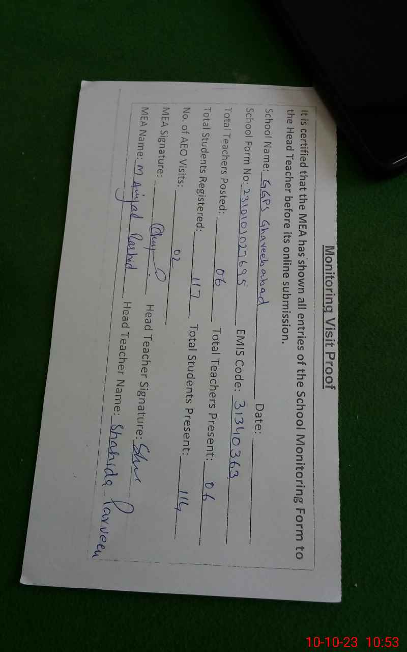 | EMIS Code: 31340363 | Name of School: GGPS GHARIB ABAD GALIB STREET 3 | |||