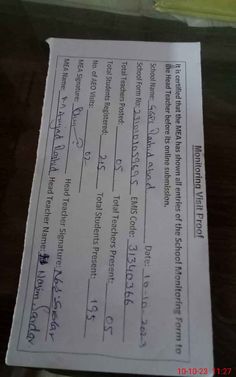 | EMIS Code: 31340366 | Name of School: GGPS RASHID ABAD NO. 3 MOHALLAH RASHID ABAD | |||
