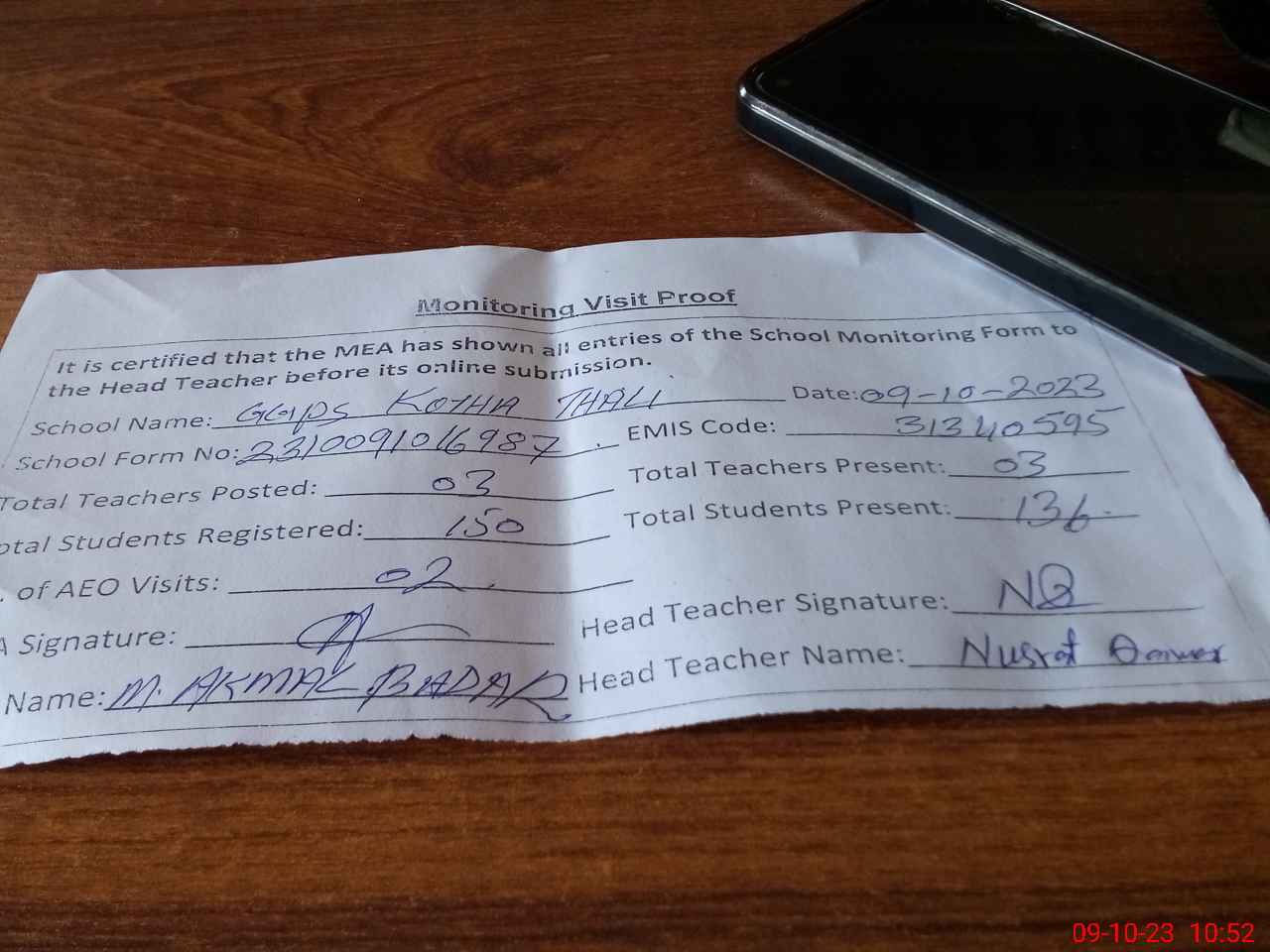 | EMIS Code: 31340595 | Name of School: GGPS KOTHA THALI | |||