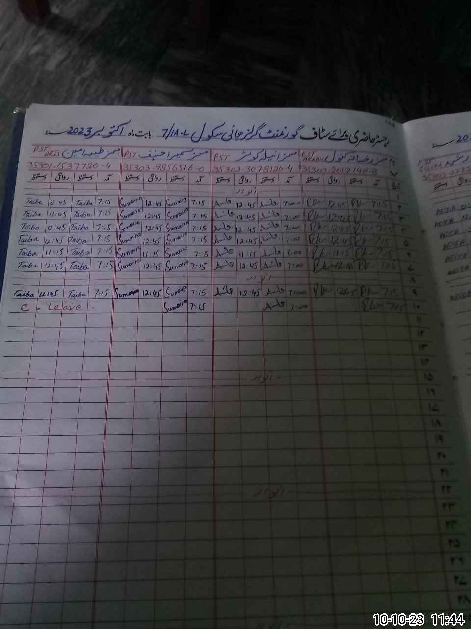 | CNIC | Full Name | Designation | R/C | Absence During Last Calender Month |