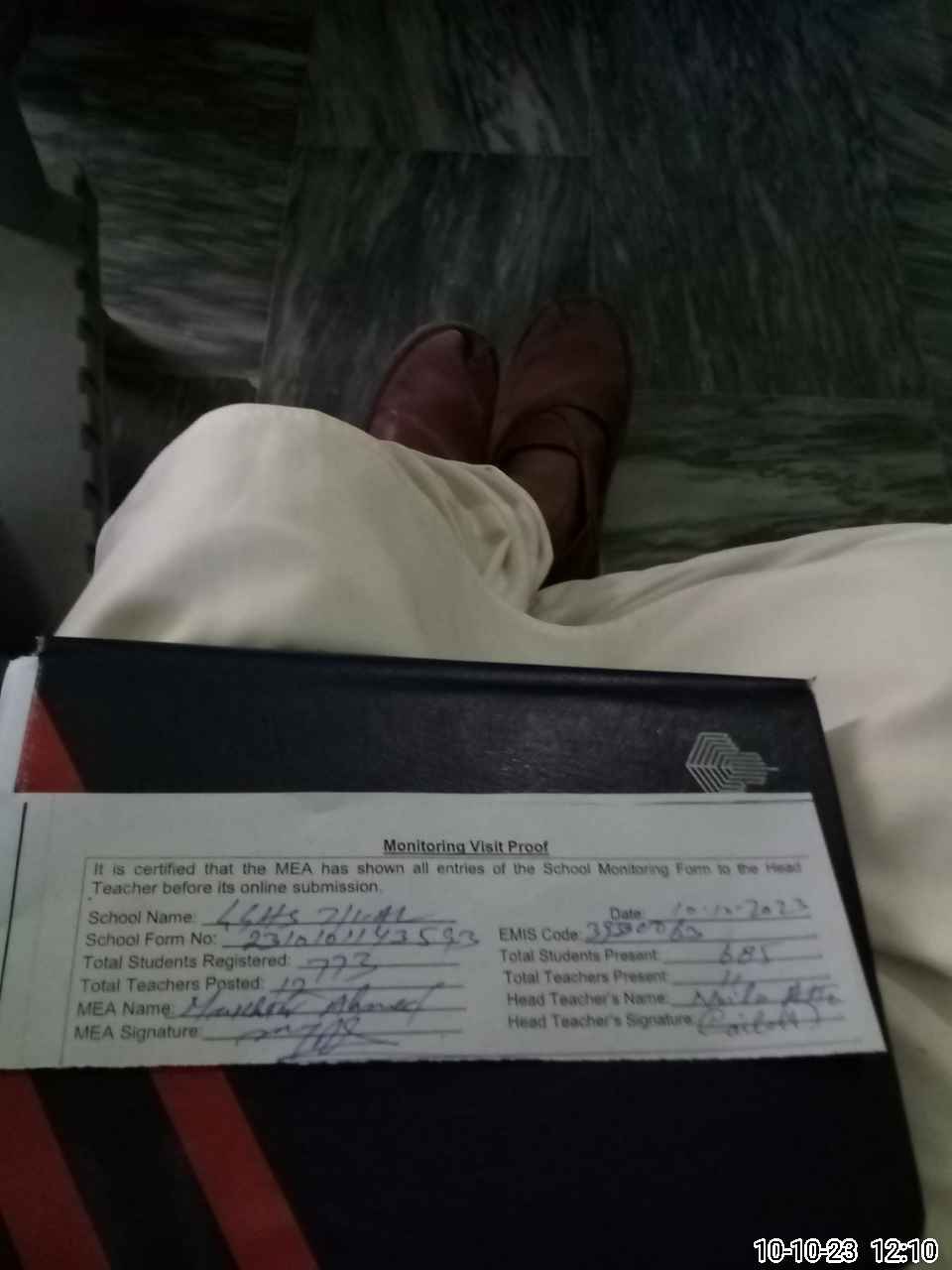 | Monitoring Date: 10-10-2023 | Start Time: 10-10-2023 11:43 AM | End Time: 10-10-2023 12:12 PM | Name of MEA: MU**** AH**** (R**** | |