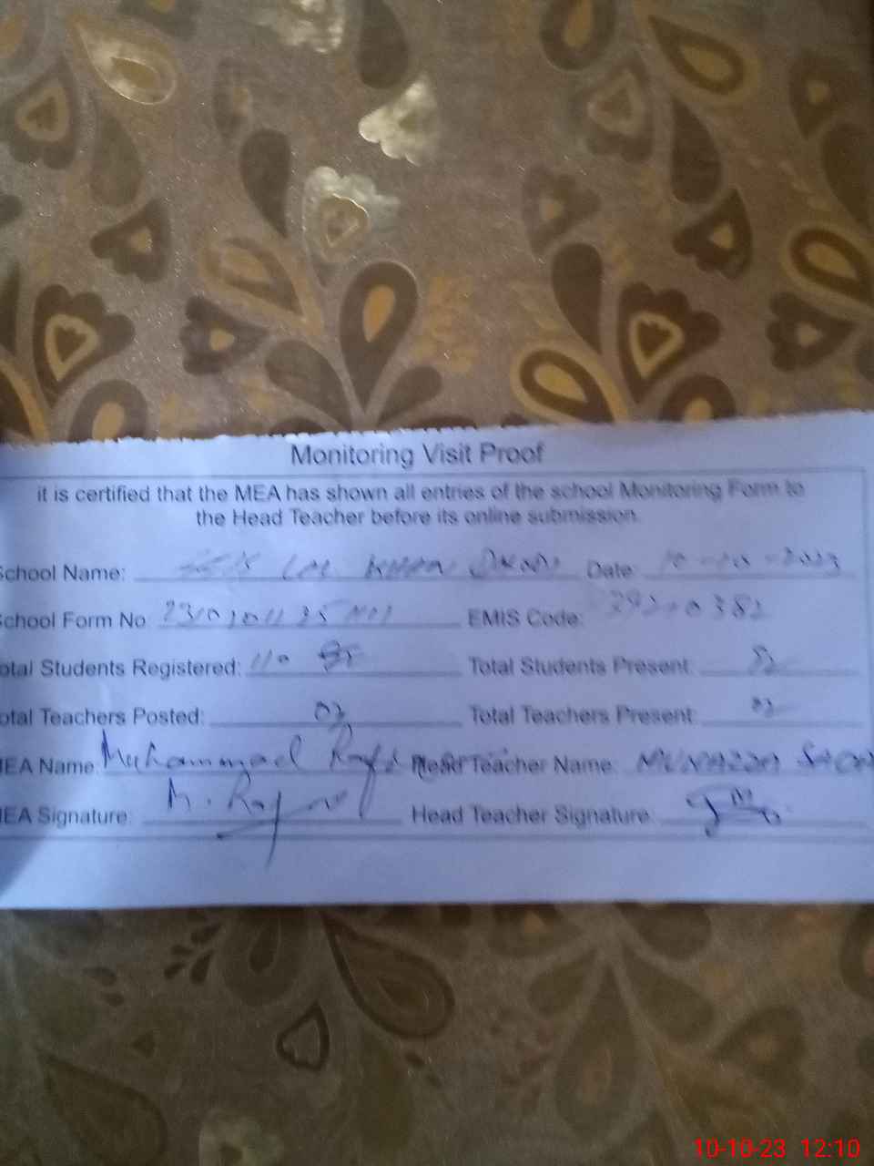 | EMIS Code: 39210382 | Name of School: GMPS LAL KHAN DHUDI | |||