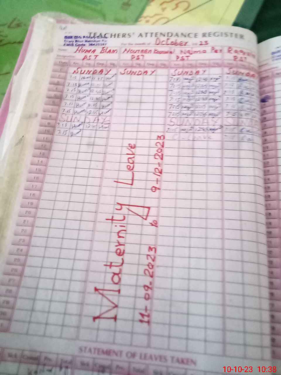 | 36**** | No**** Ka**** | 1 | 20 | 0 | 0 | 20 | 0 | 0 | 0 | 0 | 0 | Maternity | |