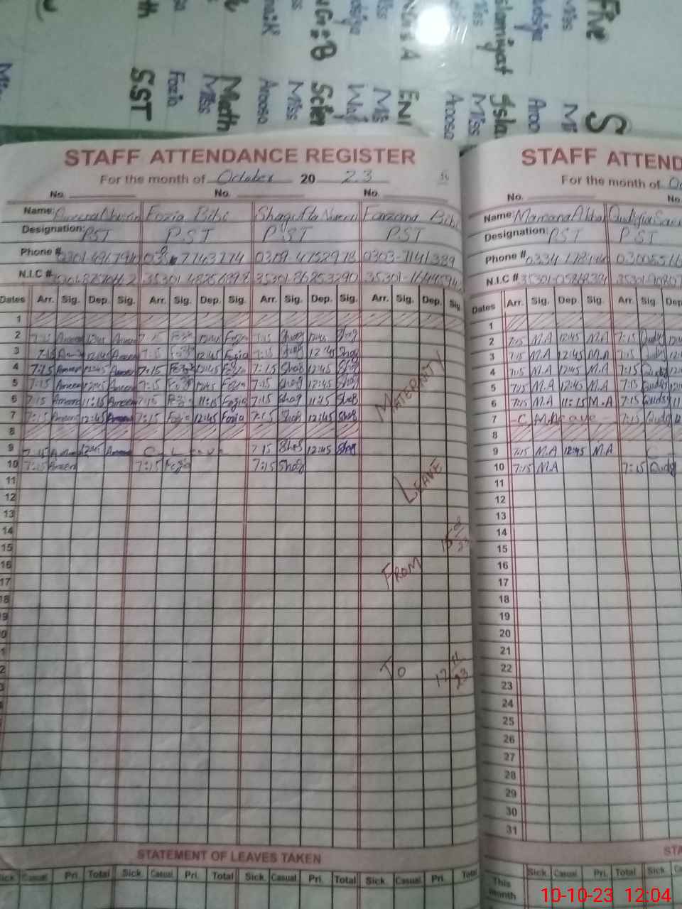 | Leave | Duty | Absent | Maternity | Medical | Ex- Pak |
