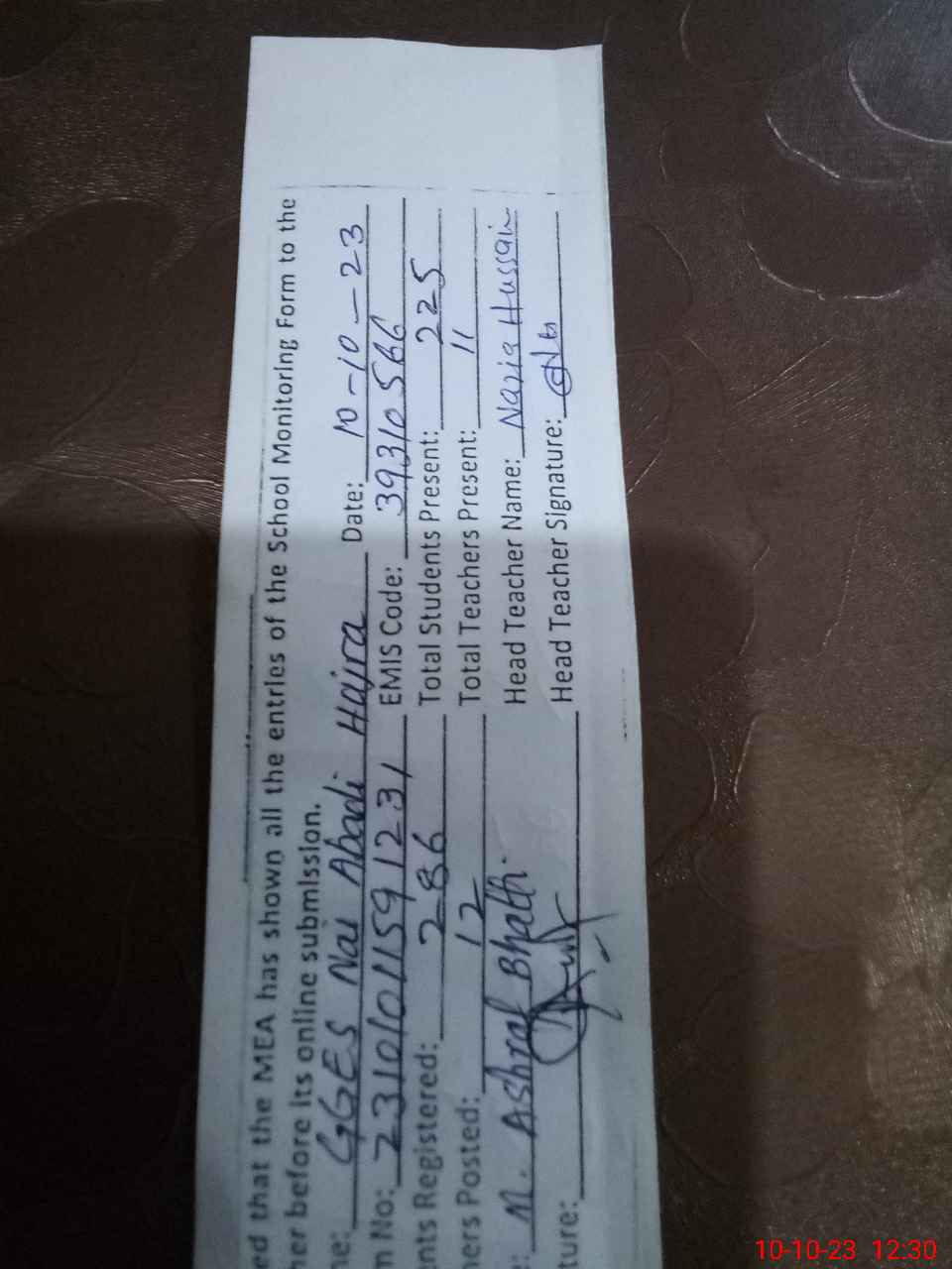 | Name: Na**** Hu**** Designation: (School Headmaster's/Headmistress's) SSE Phone/Cell Number: 03**** |