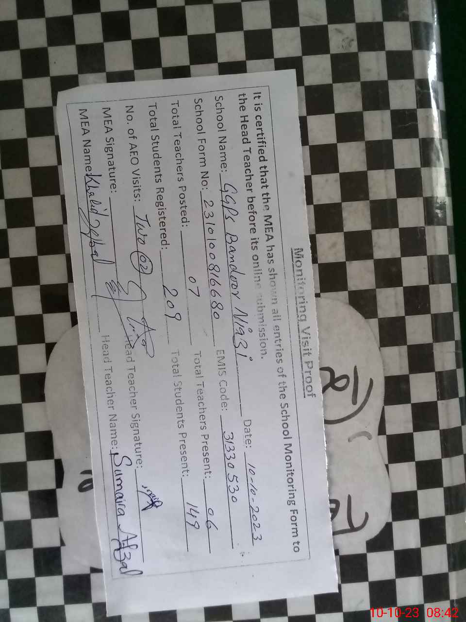 | EMIS Code: 31330530 | Name of School: GGPS BANDOOR NIAZI | |||