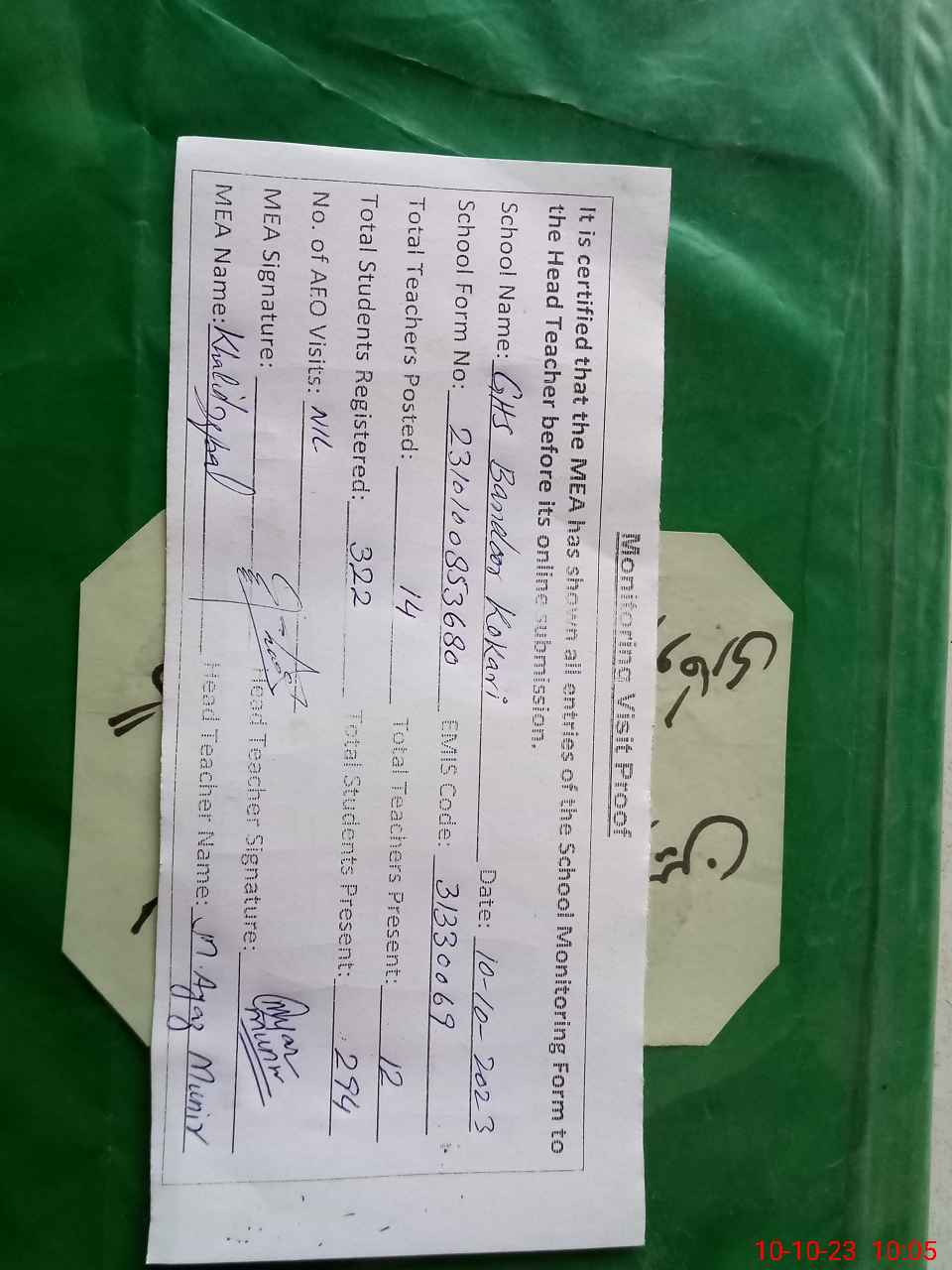 | EMIS Code: 31330069 | Name of School: GHS BINDOOR KOKARI | |||