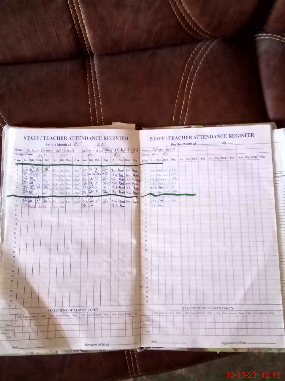 | Name: HA**** RE**** Designation: (School Headmaster's/Headmistress's) EST Phone/Cell Number: 03**** |