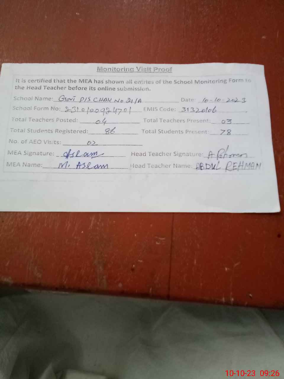 | EMIS Code: 31320106 | Name of School: GPS CHAK 21/A | |||