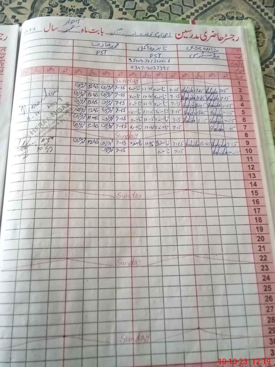 | Name: Ar**** Designation: (School Headmaster's/Headmistress's) PST Phone/Cell Number: 03**** |