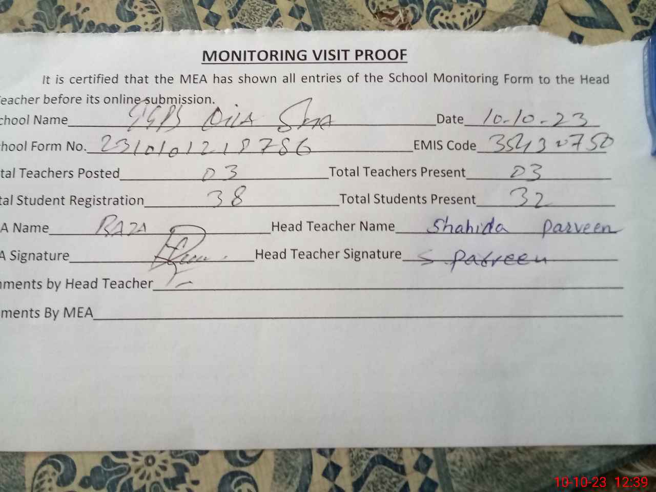 | Certified that this School was Inspected by the Undersigned MEA/DMO Today and the Information Stated Above is as Per Record. | |||||