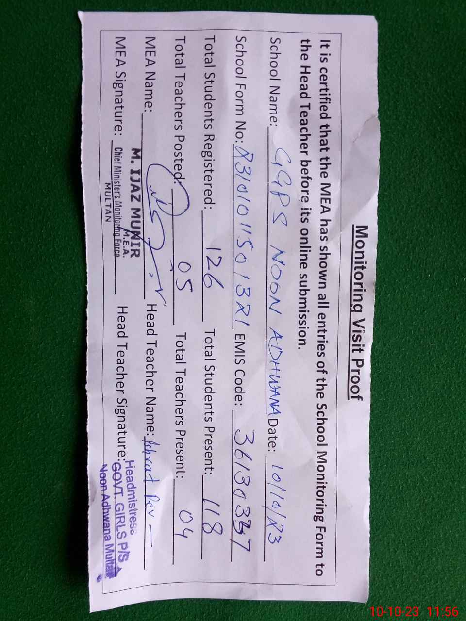 | EMIS Code: 36130337 | Name of School: GGPS NOON ADHWANA NEAR NAWAB PUR ROAD CHAK MAHANI | |||