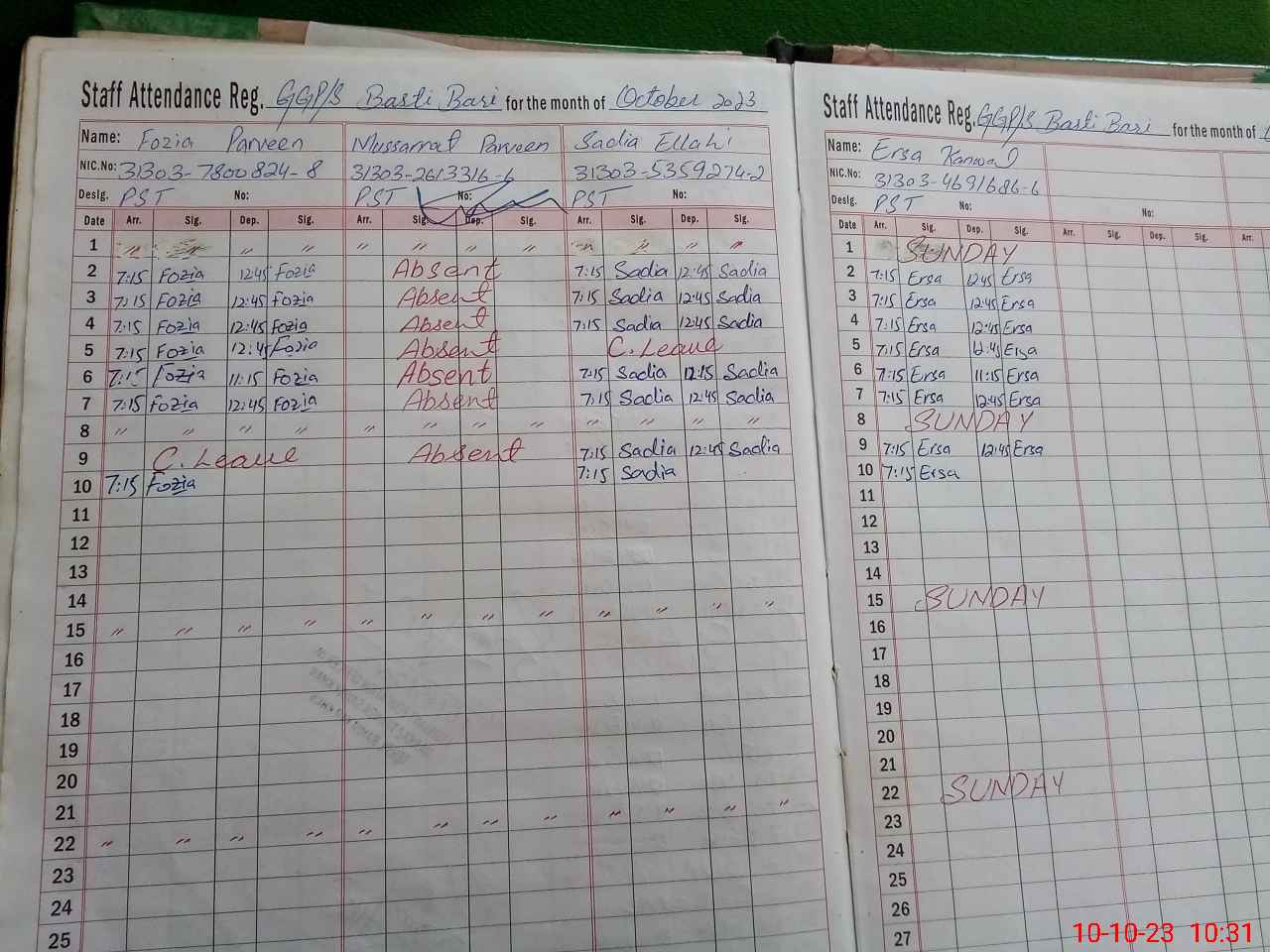 | 31**** | Mu**** Pa**** | 1 | 0 | 0 | 30 | 0 | 0 | 0 | 0 | 0 | 0 | Absent (Un-Authorized) | |