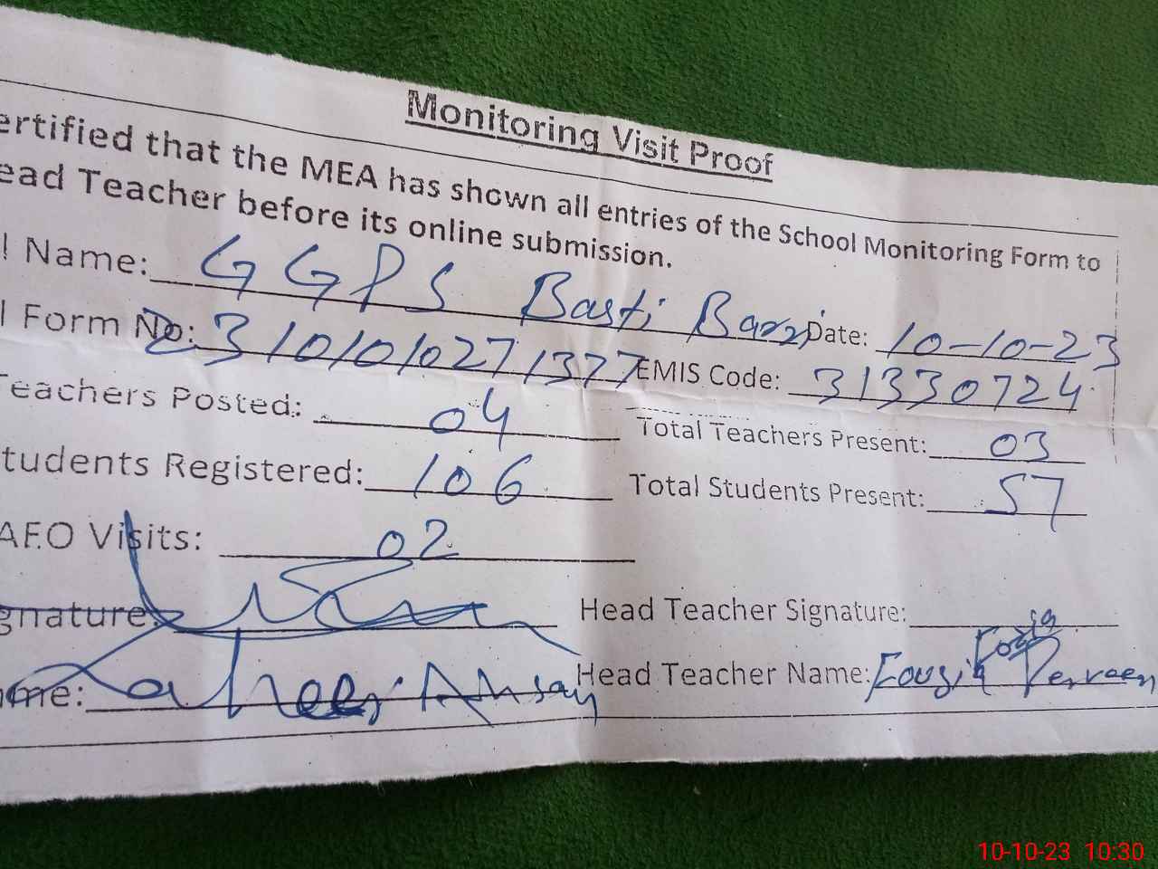 | EMIS Code: 31330724 | Name of School: GGPS BASTI BARI | |||