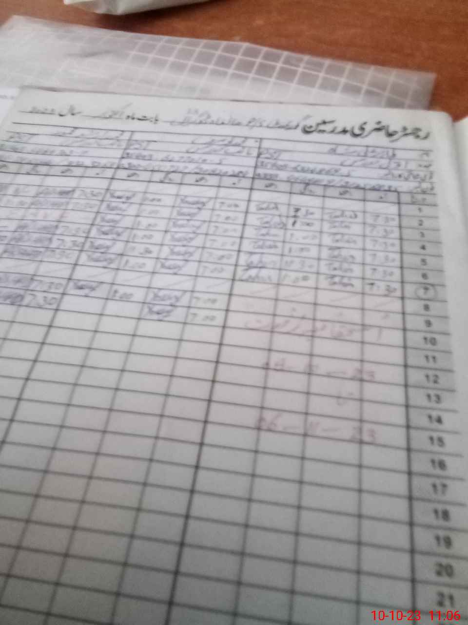 | CNIC | Full Name | Designation | R/C | Absence During Last Calender Month |