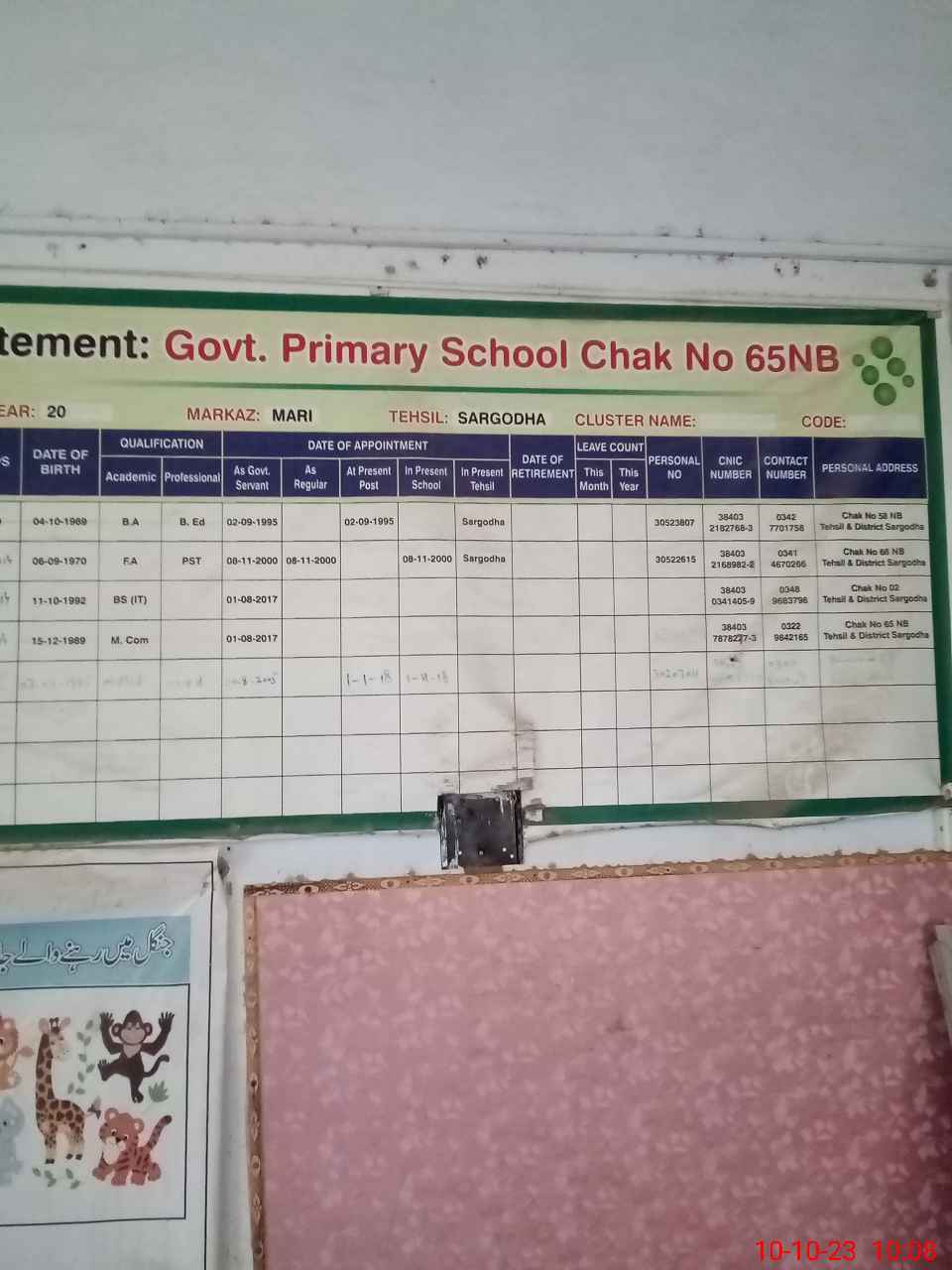 | EMIS Code: 38420433 | Name of School: GPS CHAK NO.65 NB | |||