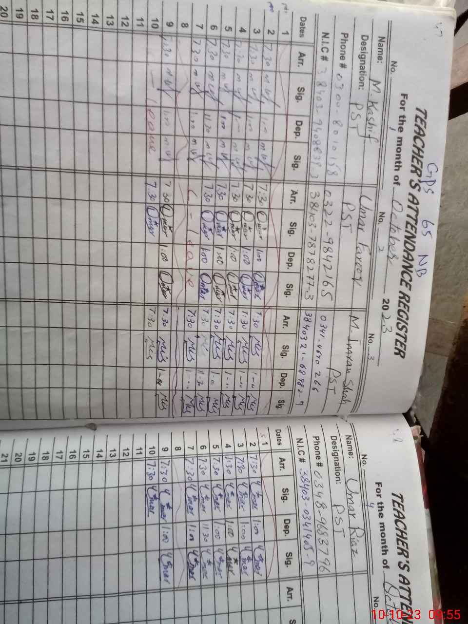 | Name: MU**** KA**** Designation: (School Headmaster's/Headmistress's) PST Phone/Cell Number: 03**** |