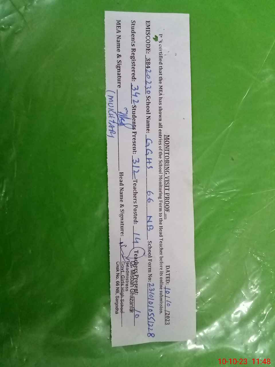 | EMIS Code: 38420230 | Name of School: GGHS CHAK NO.66 NB | |||