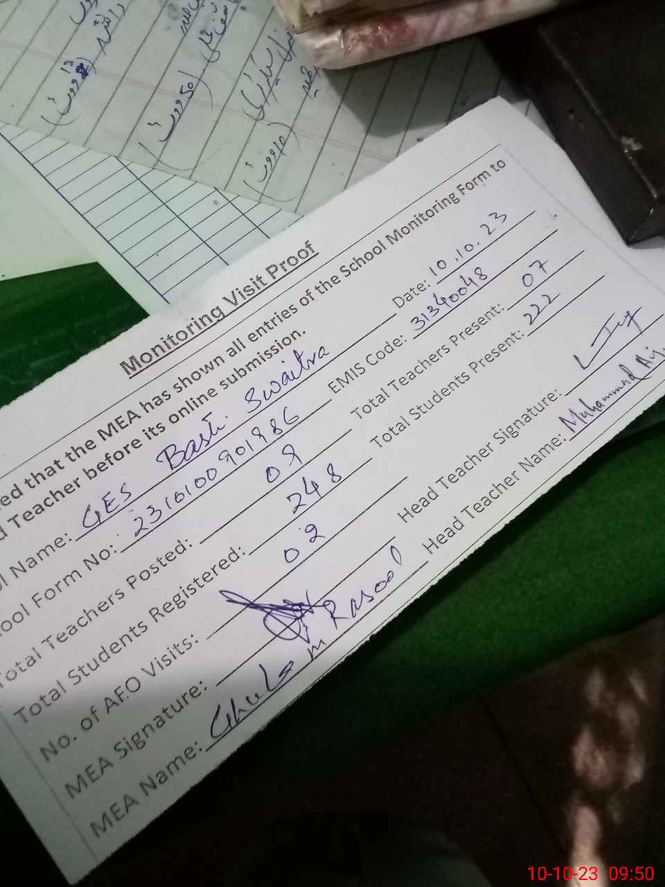 | EMIS Code: 31340048 | Name of School: GES BASTI SWAITRA | |||