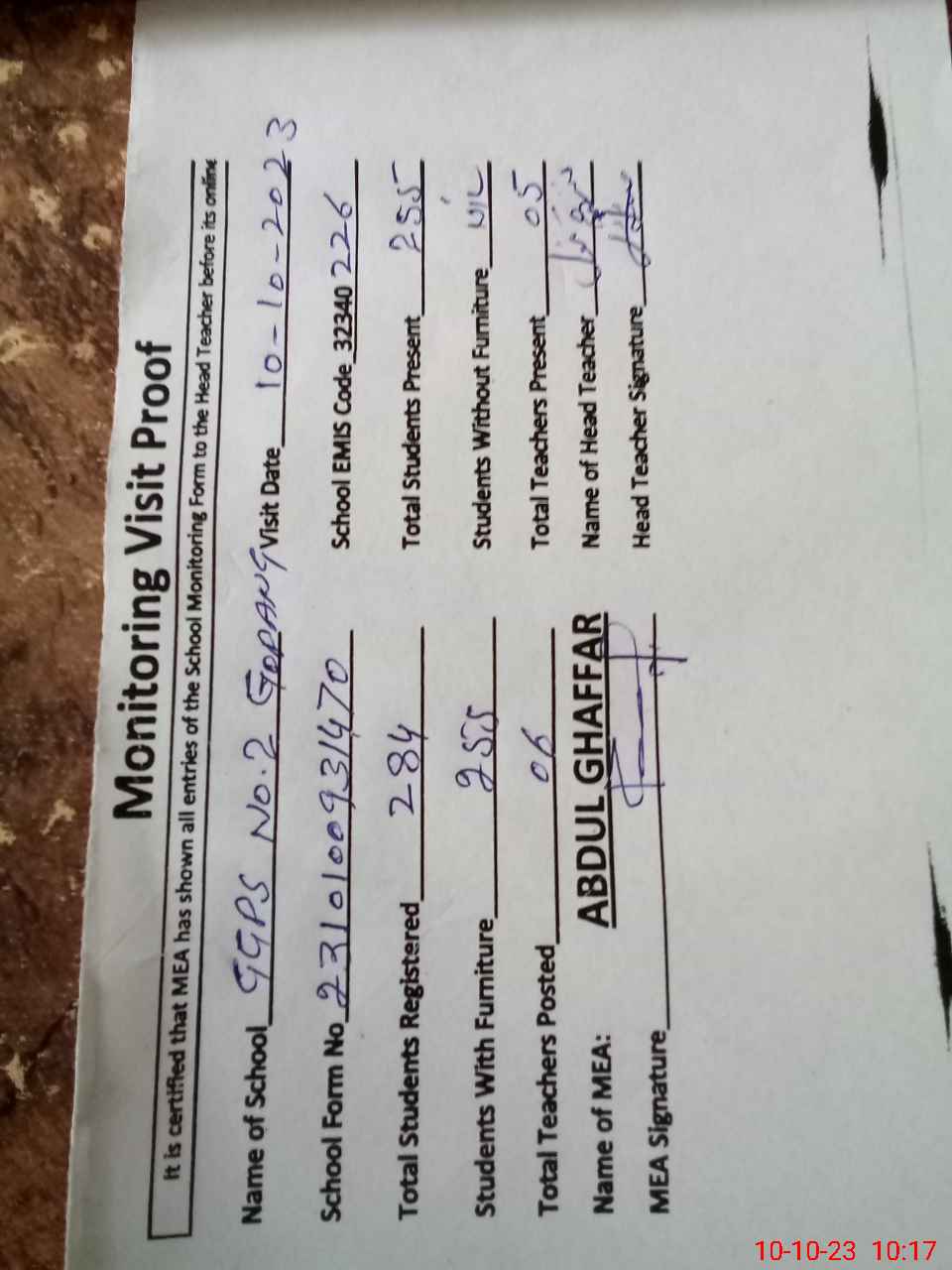 | EMIS Code: 32340226 | Name of School: GGPS NO.2 GOPANG | |||