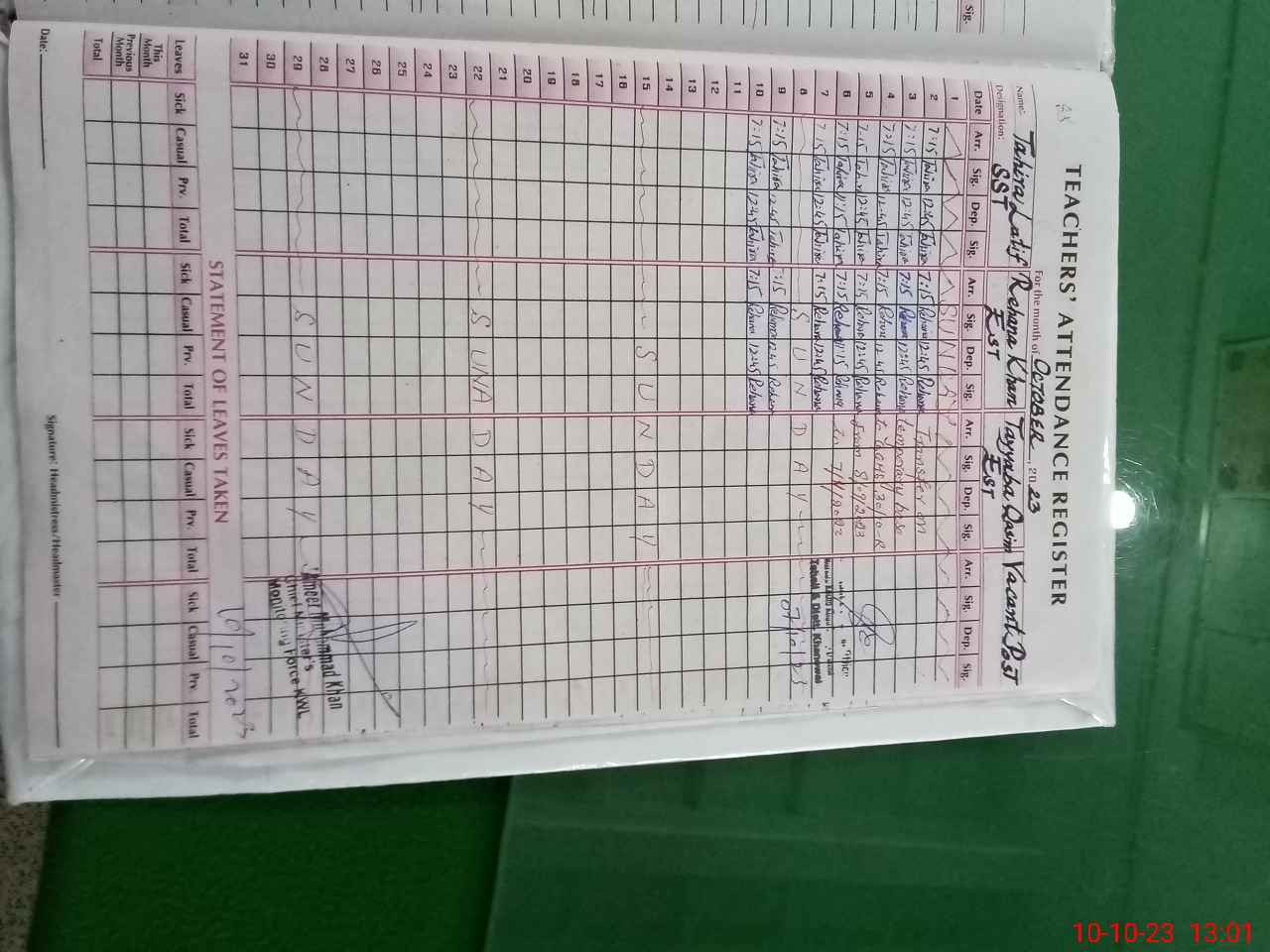 | Name: Re**** Kh**** Designation: (School Headmaster's/Headmistress's) EST Sci Phone/Cell Number: 03**** |