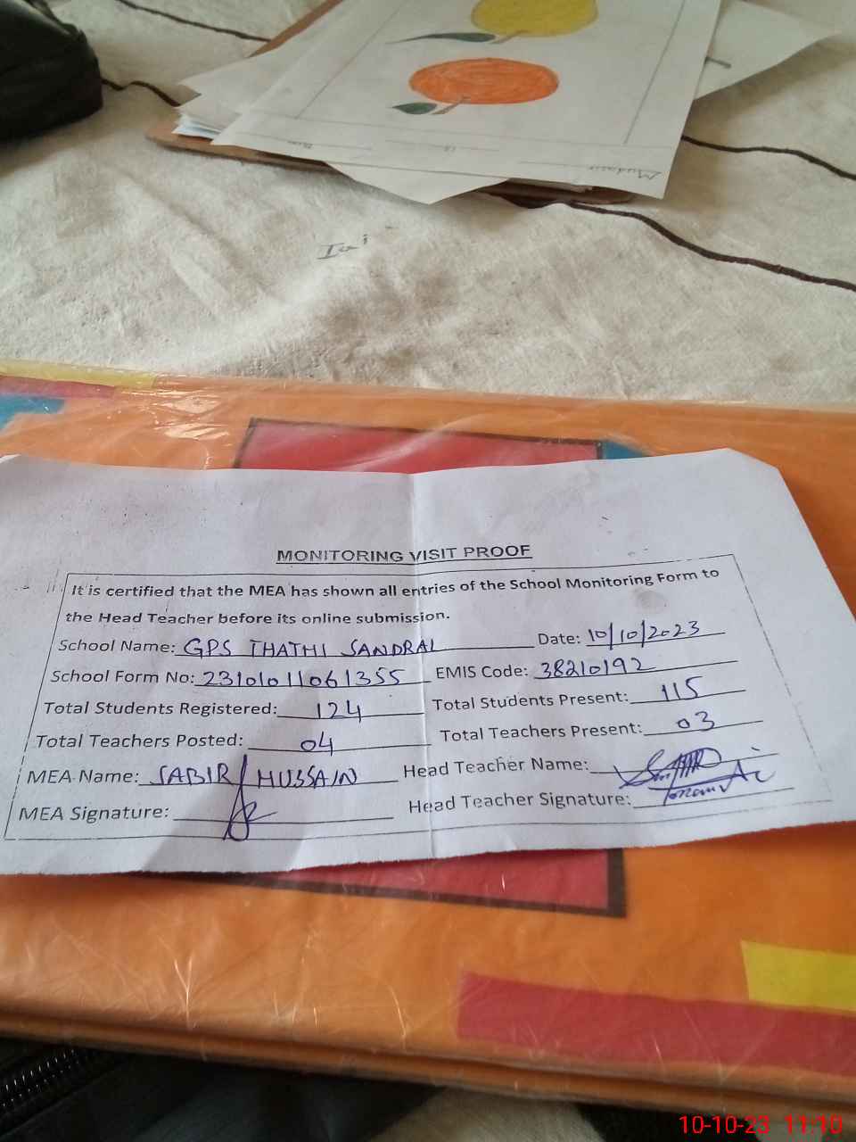 | EMIS Code: 38210192 | Name of School: GPS THATHI SANDRAL | |||
