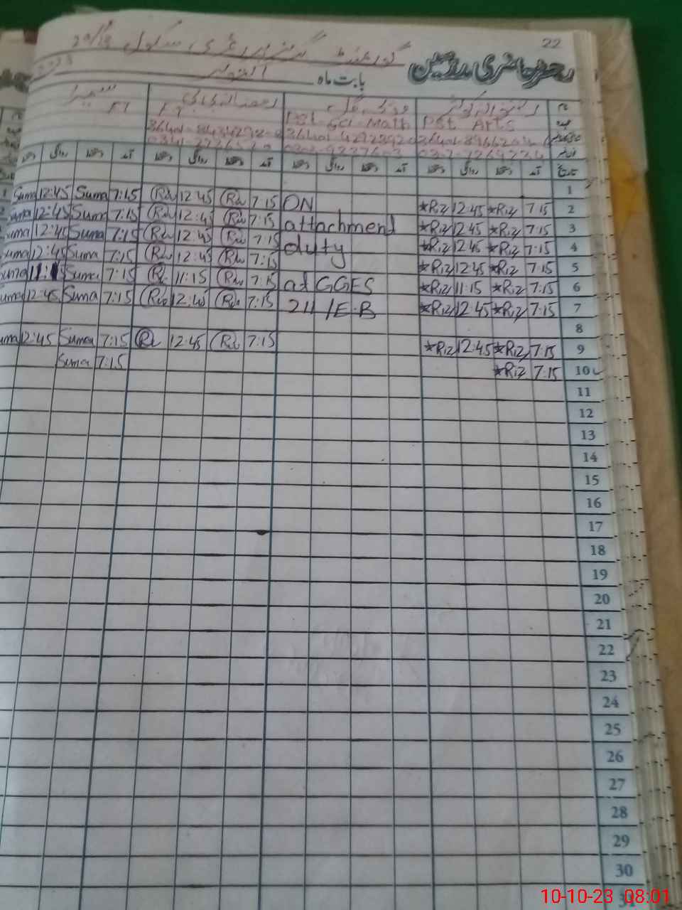 | CNIC | Full Name | Designation | R/C | Absence During Last Calender Month |