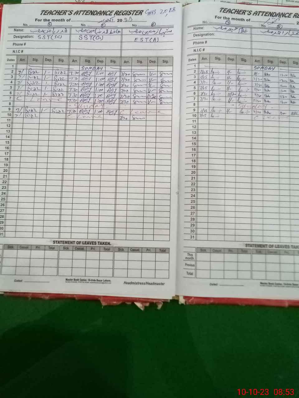 | Name: HA**** M.**** Designation: (School Headmaster's/Headmistress's) SST(G) Phone/Cell Number: 03**** |