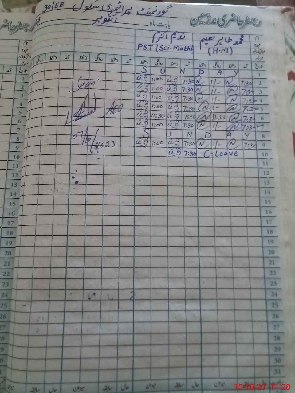 | Name: MU**** TA**** NA**** Designation: (School Headmaster's/Headmistress's) PST Phone/Cell Number: 03**** |